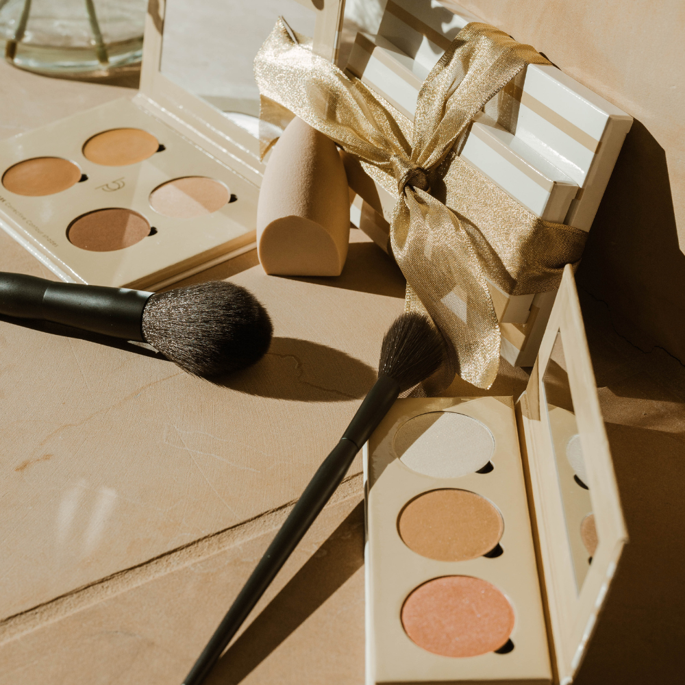 - Reflective Finish Tan – Satin setting powder that locks in glow and blurs texture
